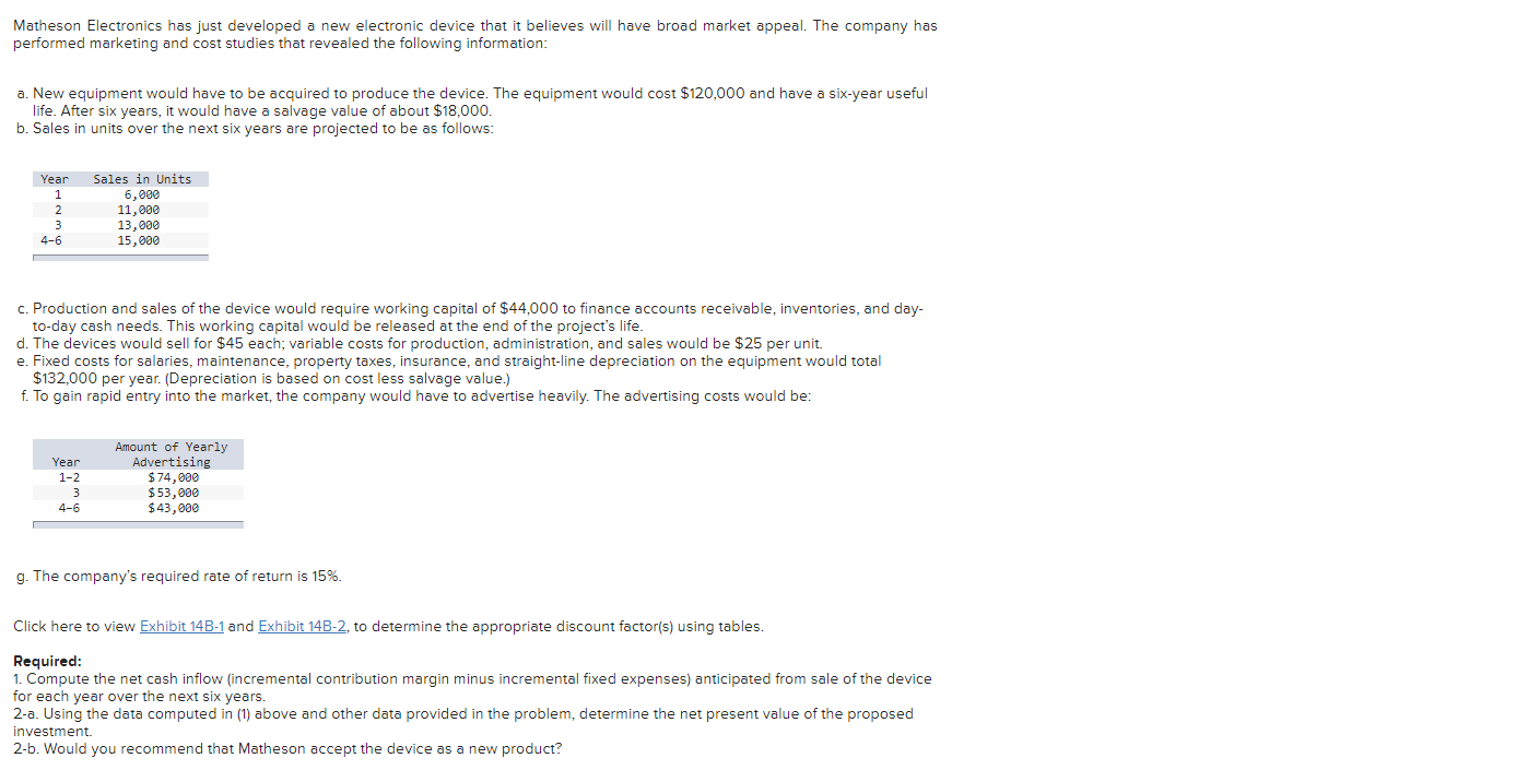 Solved Matheson Electronics Has Just Developed A New Chegg Com